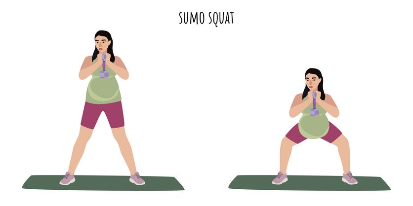 做法: 1. 雙腳站立,距離比肩膀寬,腳尖稍微朝外約45度。 2. 挺直背部,收緊核心,身體重心放在腳跟。 3. 吸氣時,臀部向後推並緩慢下蹲,直到大腿與地面平行,感受大腿內側的伸展。 4. 呼氣時,利用大腿內側與臀部的力量將身體推回起始位置。建議重複15次為一組,共進行3組。